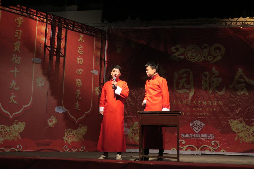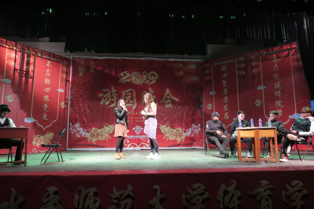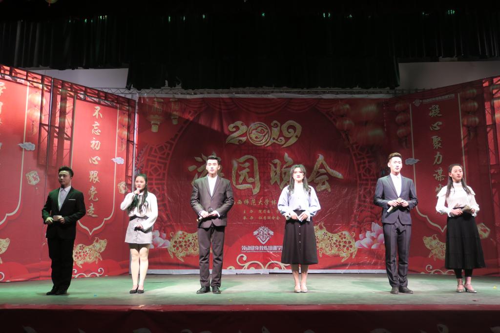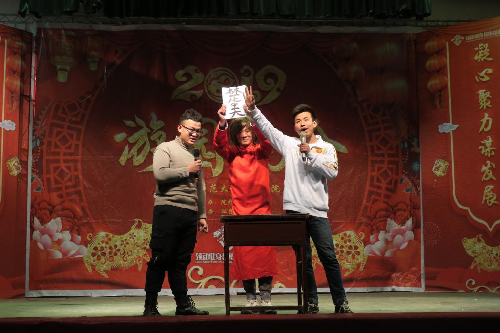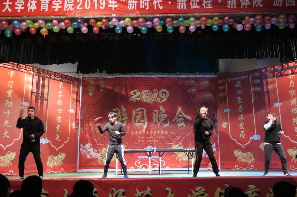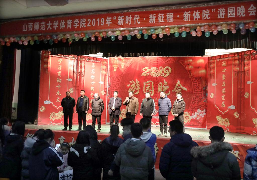 2018年12月31日,由VSport团委员工会主办,员工社团联合会承办的“新时代 新征程 新体院”游园晚会暨新年团拜会在大礼堂举行,全院400余名师生参与了此次活动。游园晚会包括节目表演和互动游戏两部分,历时三个半小时,游园晚会结束后举行新年团拜会。