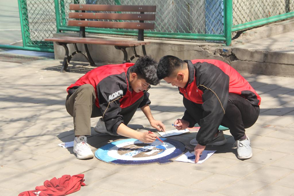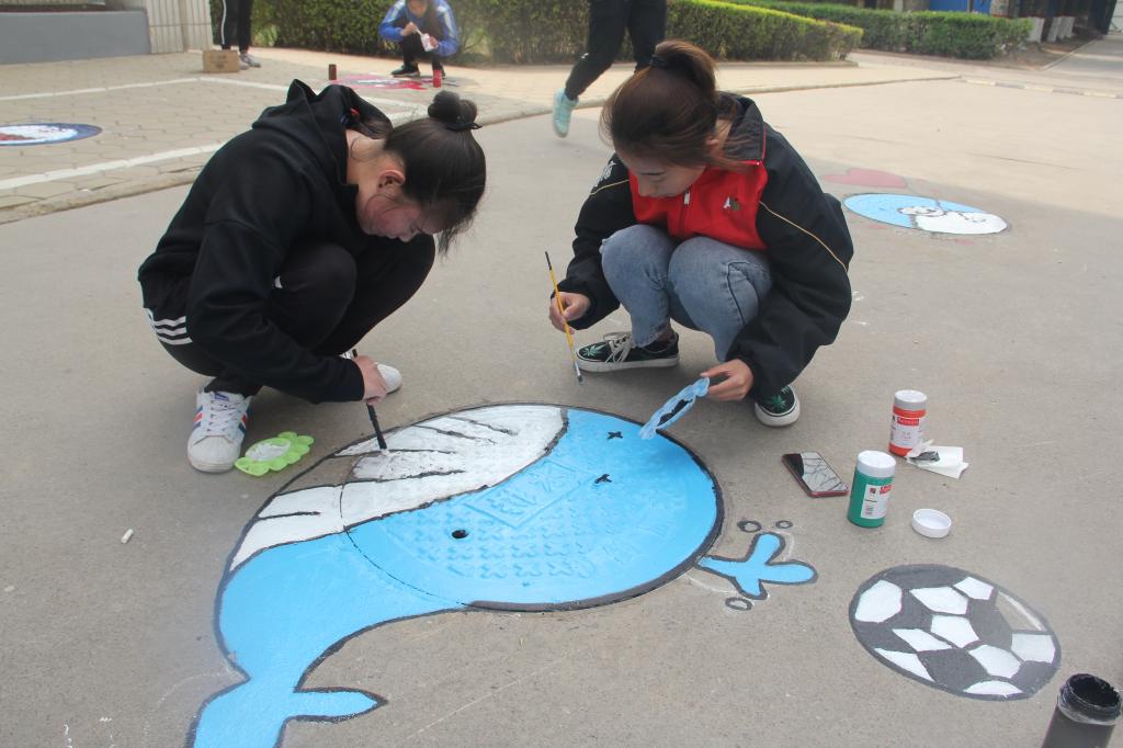 运动训练系开展“绘彩体院情”校园井盖涂鸦活动