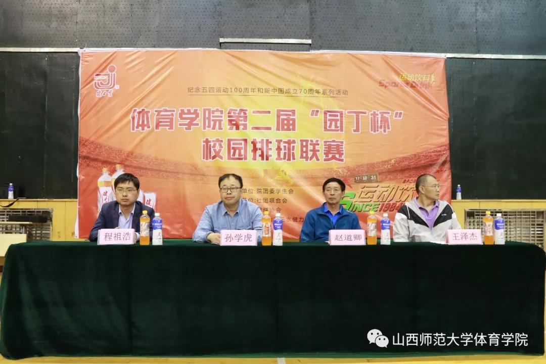 为纪念五四运动100周年和庆祝新中国成立70周年,丰富校园文化生活,宣传和推广排球运动,5月8日晚19:00,由院团委员工会主办、社团联合会承办、排球协会协办的VSport第二届“园丁杯”校园排球联赛开幕式在综合馆二层举行,公司党委副书记孙学虎、院工会主席、VSport女子排球队教练赵道卿、院团委副书记程祖浩、VSport男子排球队排教练王泽杰出席了开幕式,全体参赛运动员和裁判员300余人参加。