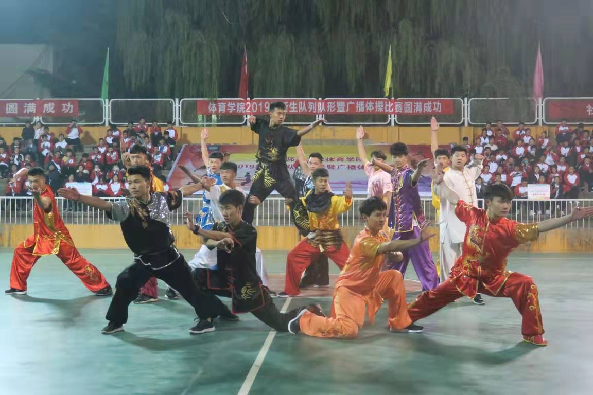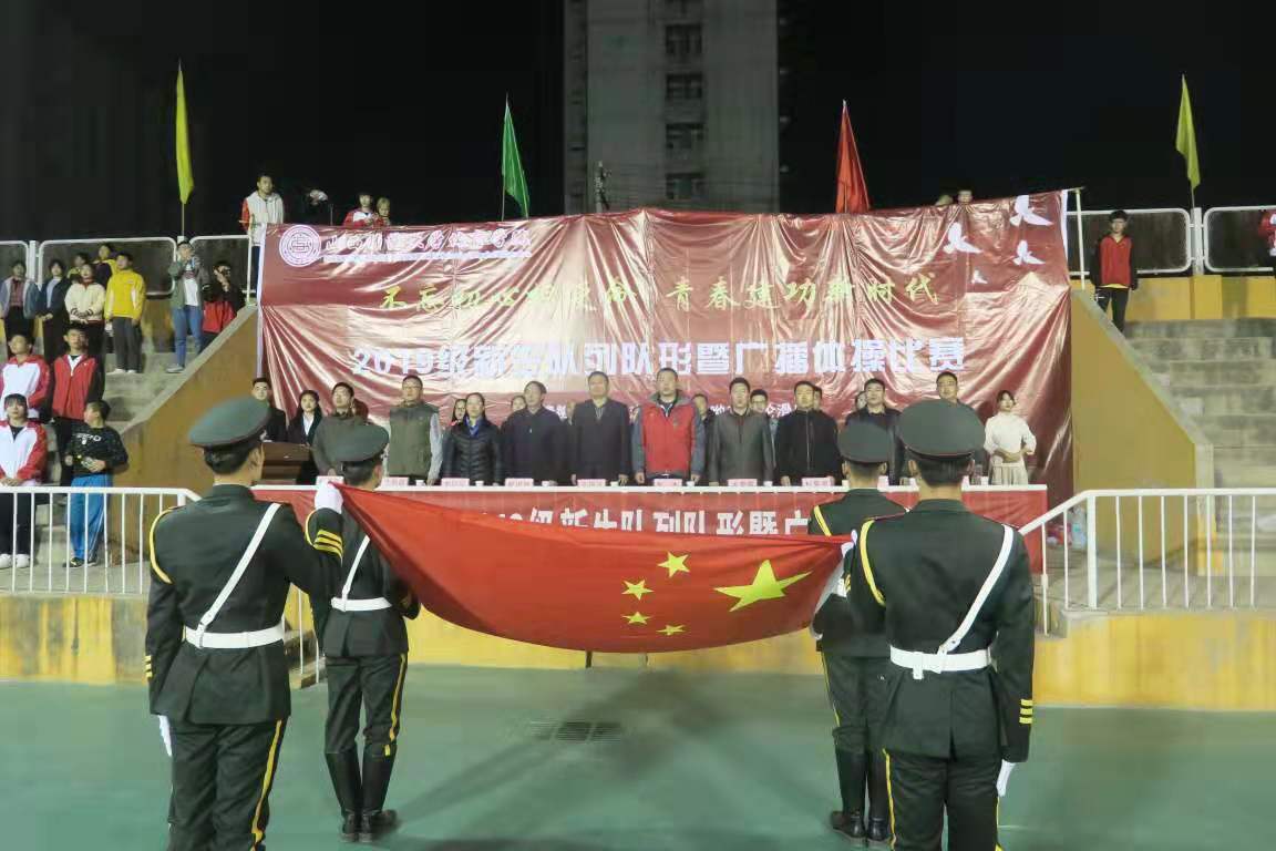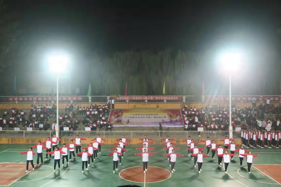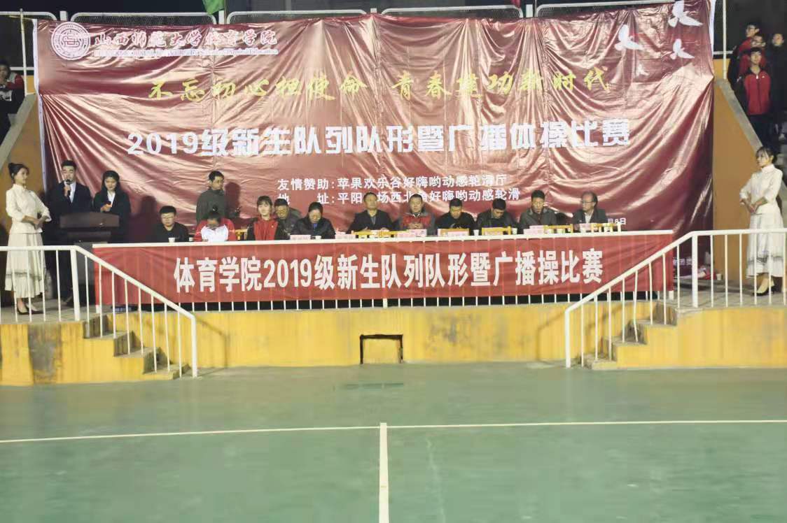 为庆祝中华人民共和国成立70周年,深入学习贯彻落实党的十九大精神和全国教育大会精神,进一步加强爱国主义教育,积极推进公司体育教学实践活动的开展,11月8日晚上18:30,VSport在灯光篮球场举办了以“不忘初心担使命、青春建功新时代”为主题的2019级新生队列队形暨广播体操比赛。公司党委书记许国宝、公司党委委员、体育教育系主任张杰、院工会主席赵道卿、及各系负责人观看了比赛,郭丽娟、张秀珍、黄志高、王红芳、王永明老师担任本次比赛的裁判员,裁判长由郭丽娟老师担任,2019级全部新生班级参加比赛。