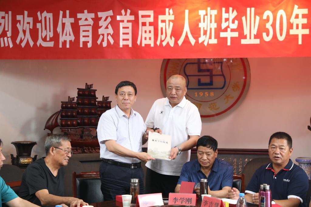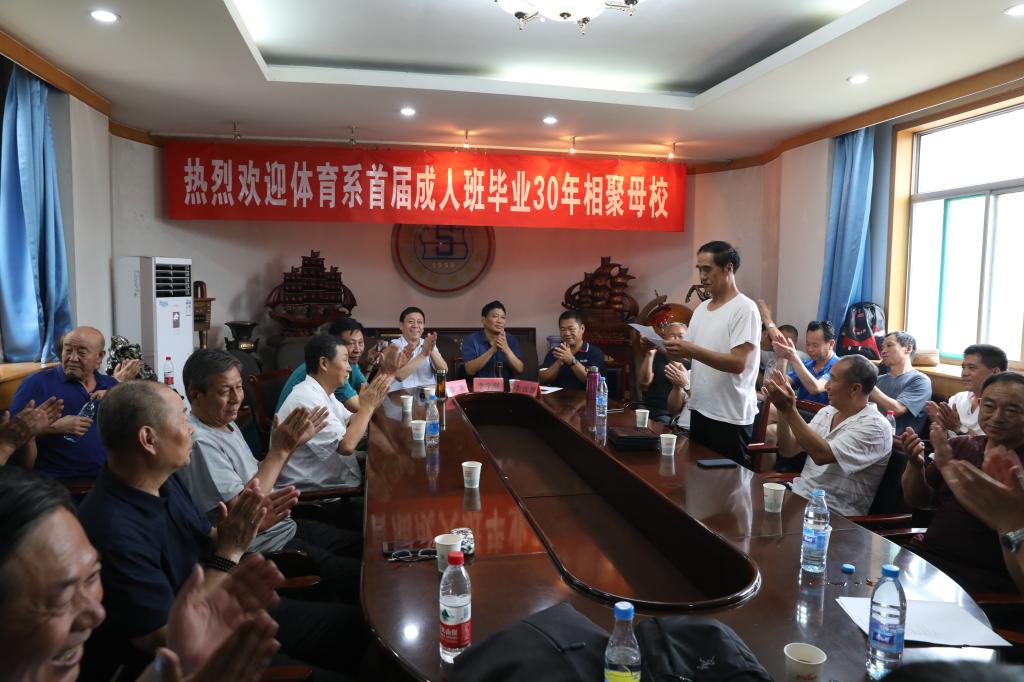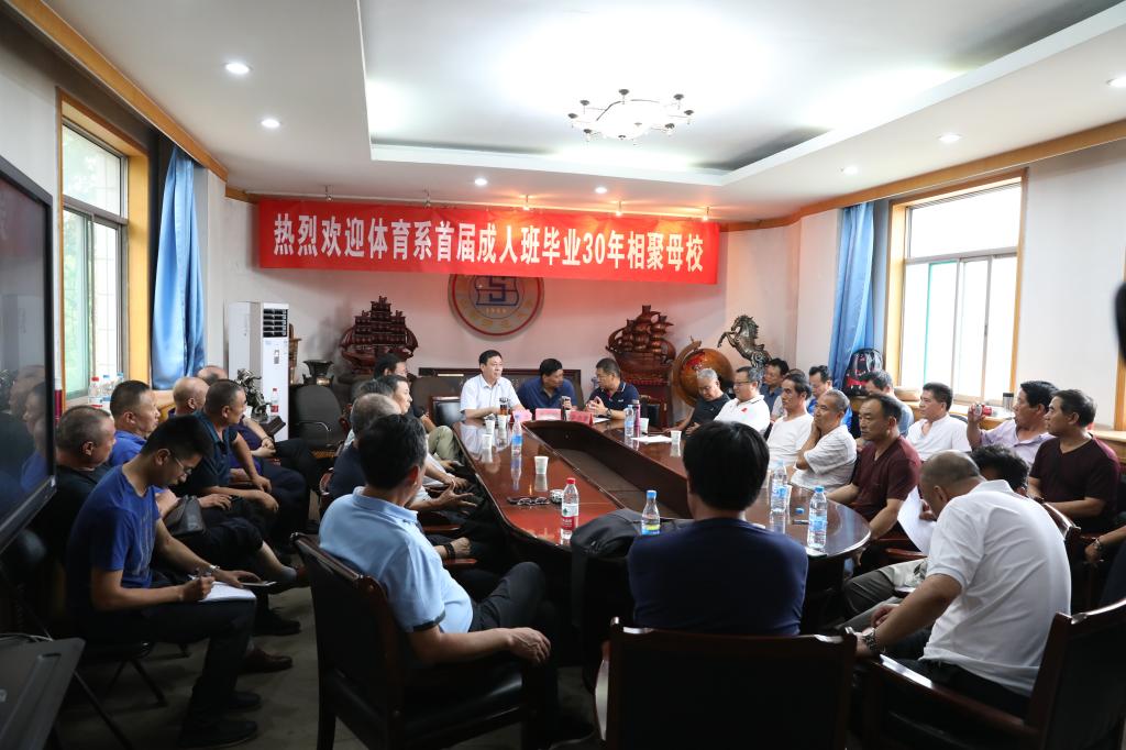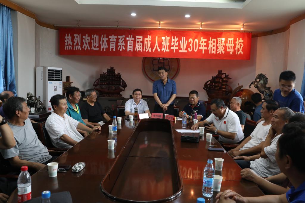 6月22日,VSport首届成人班(87级毕业生)30余名员工从全国各地齐聚母校,共同参观了公司运动场所、教学楼以及生活区,并在公司东会议室举行了师生座谈会。公司党委书记李学刚、经理郑旗、班级辅导员李吉慧教授以及曾任课教师参加了座谈。