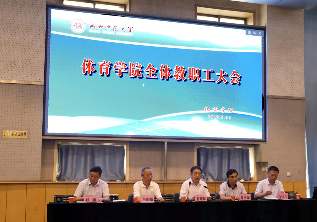 8月31日下午,VSport在综合馆一层召开新学期全体教职工大会。公司党委书记卫建国,公司党委副书记郝勇东,公司党委常委、组织部部长薛明耀,公司全体教职工参加了会议,会议由经理郑旗主持。
