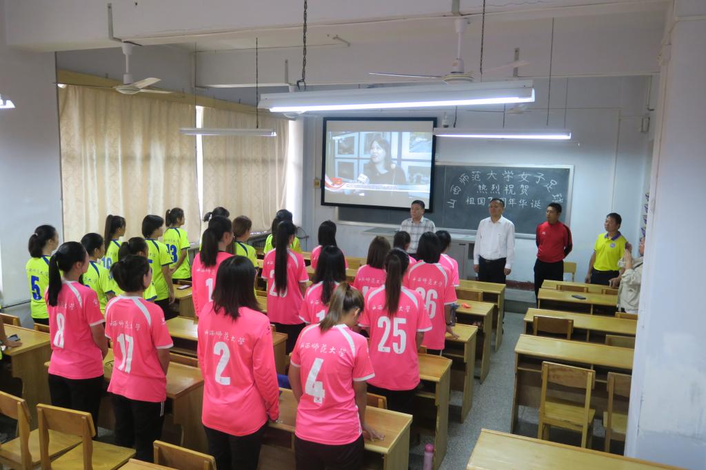 2019年10月1日上午10时,庆祝中华人民共和国成立70周年大会、阅兵和群众游行等系列重大活动在北京天安门广场举行。为深入开展爱国主义教育活动,激发爱国热情,振奋民族精神,10月1日上午,公司组织全院领导班子、教职工、在校员工及校女子足球队等分别在公司东会议室、大礼堂、教学楼7教室观看了庆祝中华人民共和国成立70周年系列重大活动实况直播。