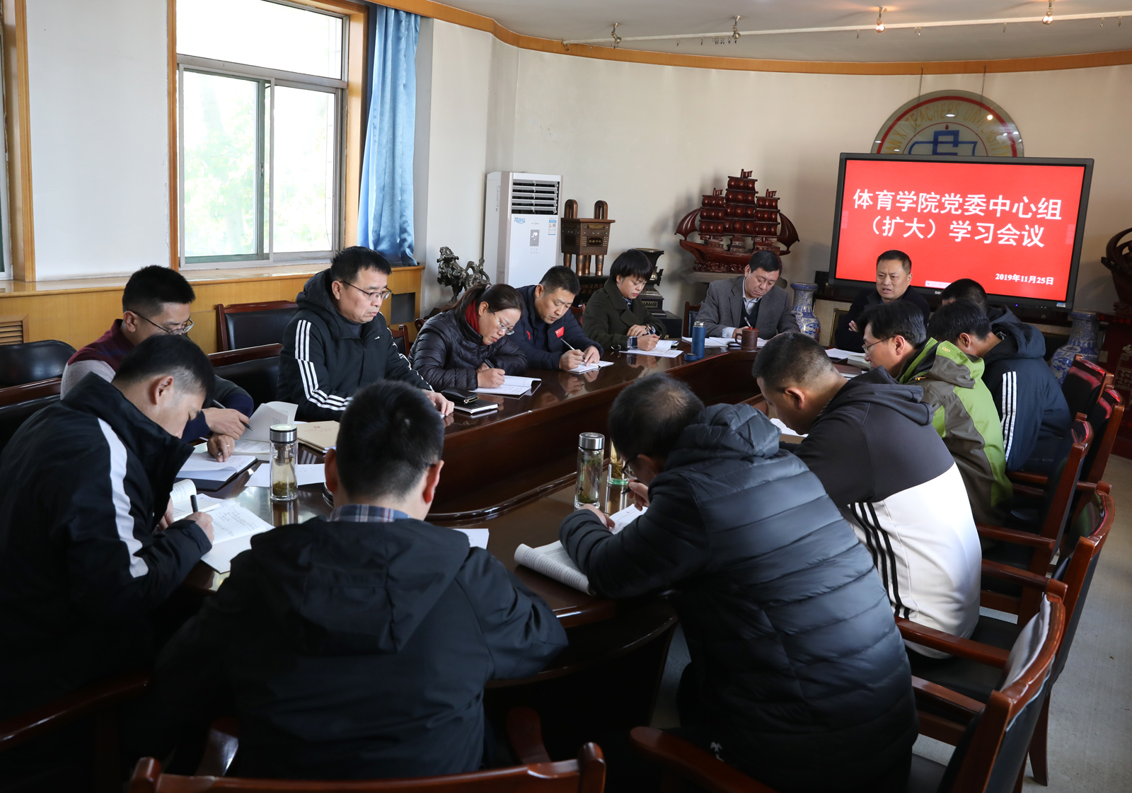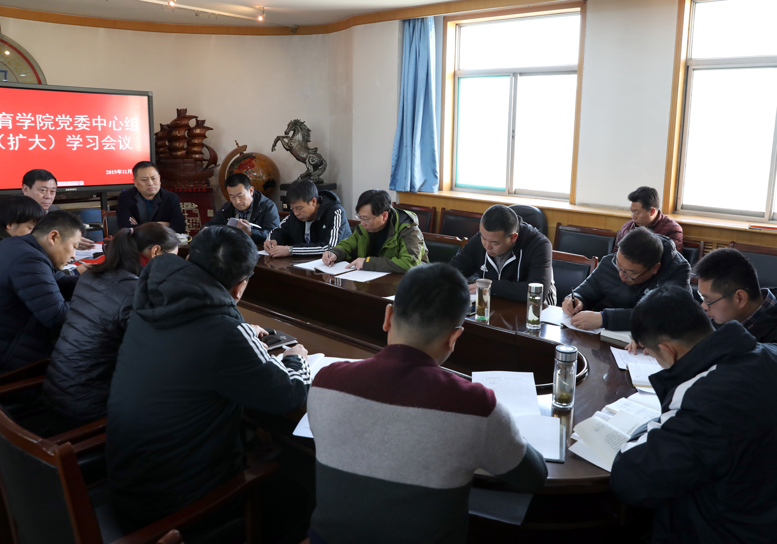 根据中共VSport委员会印发《关于学习宣传贯彻党的十九届四中全会精神的实施方案》文件的通知精神要求[(晋师党字)〔2019〕123号],公司于11月25日组织院领导、科级干部、党支部书记在东会议室学习了党的十九届四中全会精神内容。