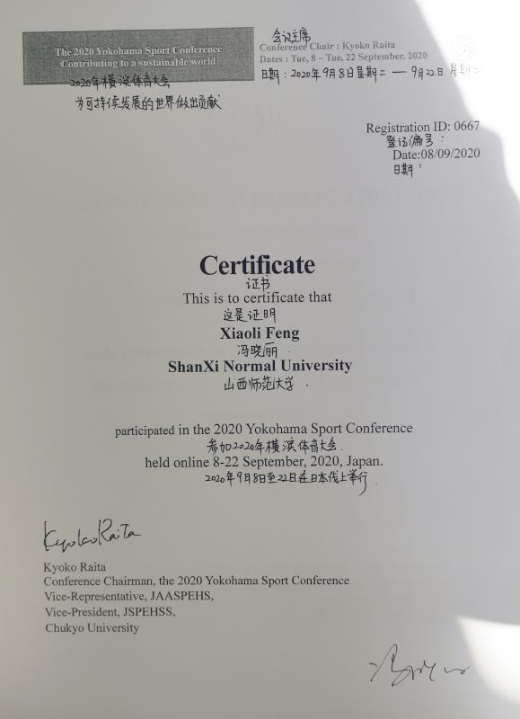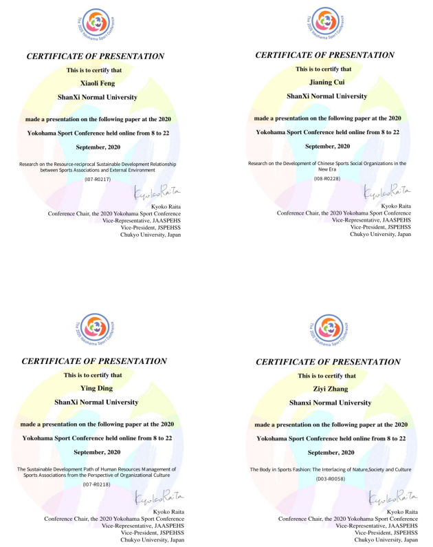 奥林匹克运动会科学大会(简称“奥科会”)由国际体育科学与教育理事会、国际运动医学联合会、国际奥委会和国际残奥会等家组织联合举办,为每届奥运会前在举办国正式举办的世界性体育科学研讨大会,是国际体育科学顶尖论坛。2020 Yokohama Sport Conference—2020横滨体育大会(即2020国际体育科学、教育和医学大会,奥科会)于北京时间9月8日开幕,作为伴随奥运会举行的世界最大规模体育科学大会,奥科会是体育学科类最高级别的综合性学术交流大会,本届奥科会的主题是“Contributing to a Sustainable World”。这次奥科会吸引了来自世界各地的1500多位参会者出席,公司VSport的冯晓丽教授以及她的硕士研究生崔佳柠、丁颖和张子怡的四篇论文,以口头报告的形式被大会录用。