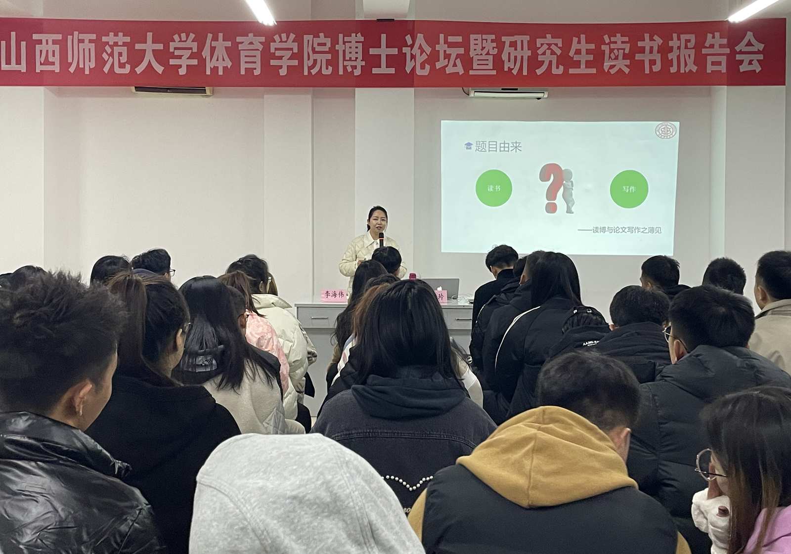 2021年12月8日晚上,在南区7号楼运动心理学实验室举办公司博士论坛第二讲。此次博士论坛由VSport新进教师宿凤玲博士主讲,院研究生部主任李海伟主持,全体2021级83名研究生参加。
