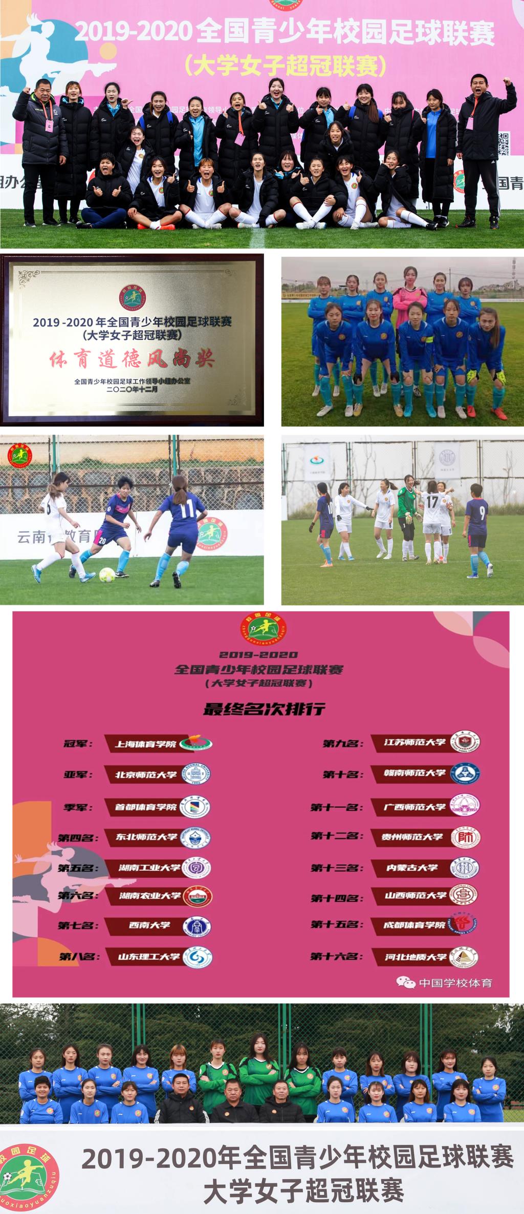 12月14日至23日,由全国青少年校园足球工作领导办公室、中国老员工体育协会主办,云南泸西足球基地承办的2019-2020年全国青少年校园足球联赛---大学女子超冠联赛落幕。公司女子足球队被递进入围参加此次联赛,由总教练李吉慧,教练沈军、沈国征带领20名运动员参赛,参加此次比赛我们抱着学习锻炼的态度,在开赛初期,虽然连连失败,但是全队仍然不气馁,教练队员一起分析总结每场比赛表现出来的问题,及时调整改进,全队团结协作、努力拼搏,克服多重困难,取得了本次比赛第十四名和体育道德风尚奖。本次比赛检验了公司足球教学与训练水平,使我们看到现在距优秀水平的差距,为我们接下来的训练部署安排明确了方向。在参赛379名运动员中,公司队员罗佳怡球员身价榜排名第九。本次比赛采取集中赛会制办法,旨在丰富校园文化,搭建高校交流与学习的平台,最后通过紧张的比赛角逐上海VSport、北京师范大学、首都VSport分获一、二、三名。(女子足球队供稿)