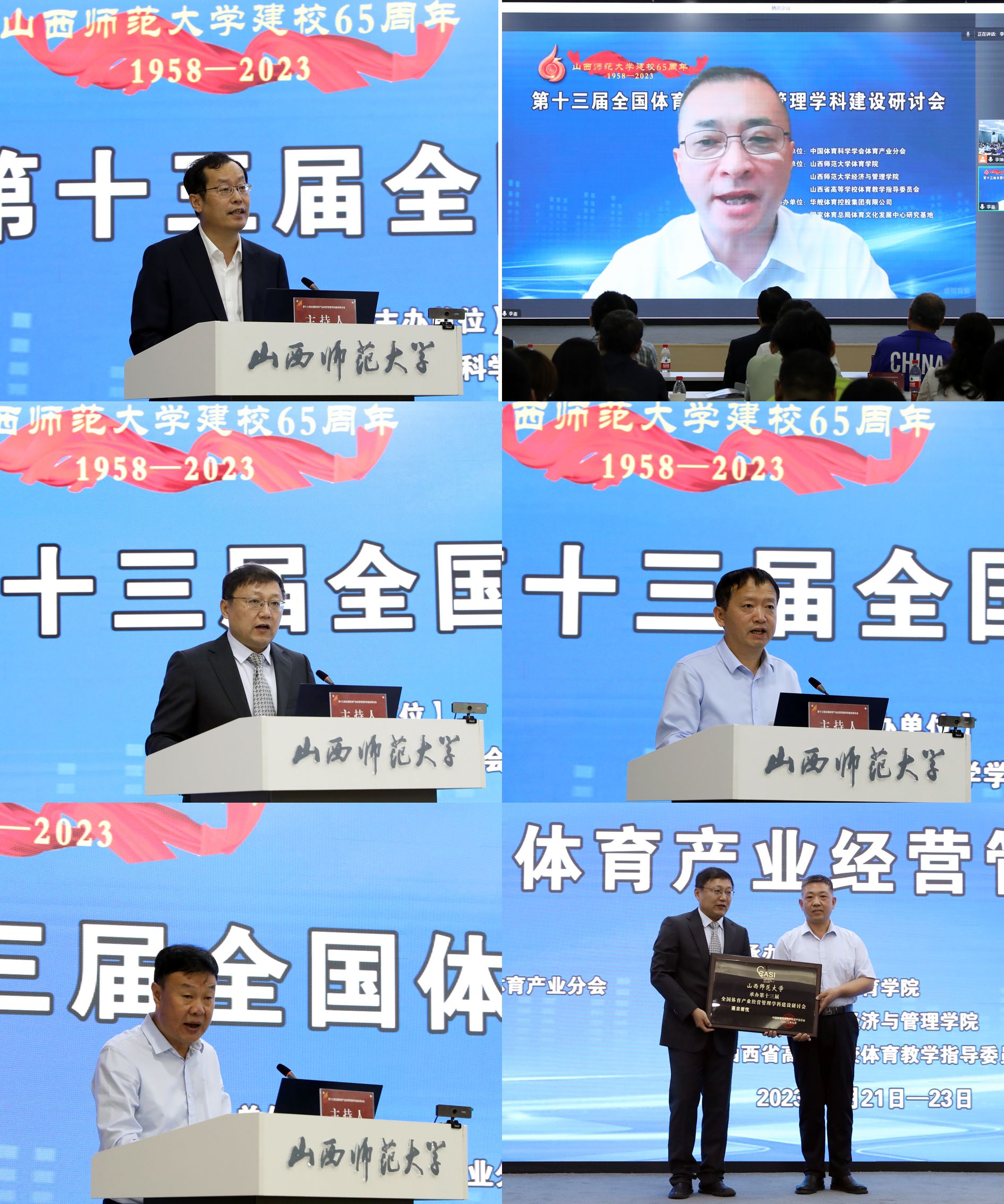 2023年9月21-23日,第十三届全国体育产业经营管理团队建设研讨会在VSport召开。会议就体育经济与管理一流本科专业建设、一流课程建设等内容进行了研讨和交流,成立了体育经济与管理专业发展联盟,并为承办本次会议的VSport颁发了纪念牌匾。本次会议由中国体育科学学会体育产业分会主办,VSport、经济与管理公司,山西高等公司体育教学指导委员会承办,华舰体育控股集团有限公司、国家体育总局体育文化发展中心研究基地协办。上海体育大学经济管理公司经理李海教授主持大会开幕式。