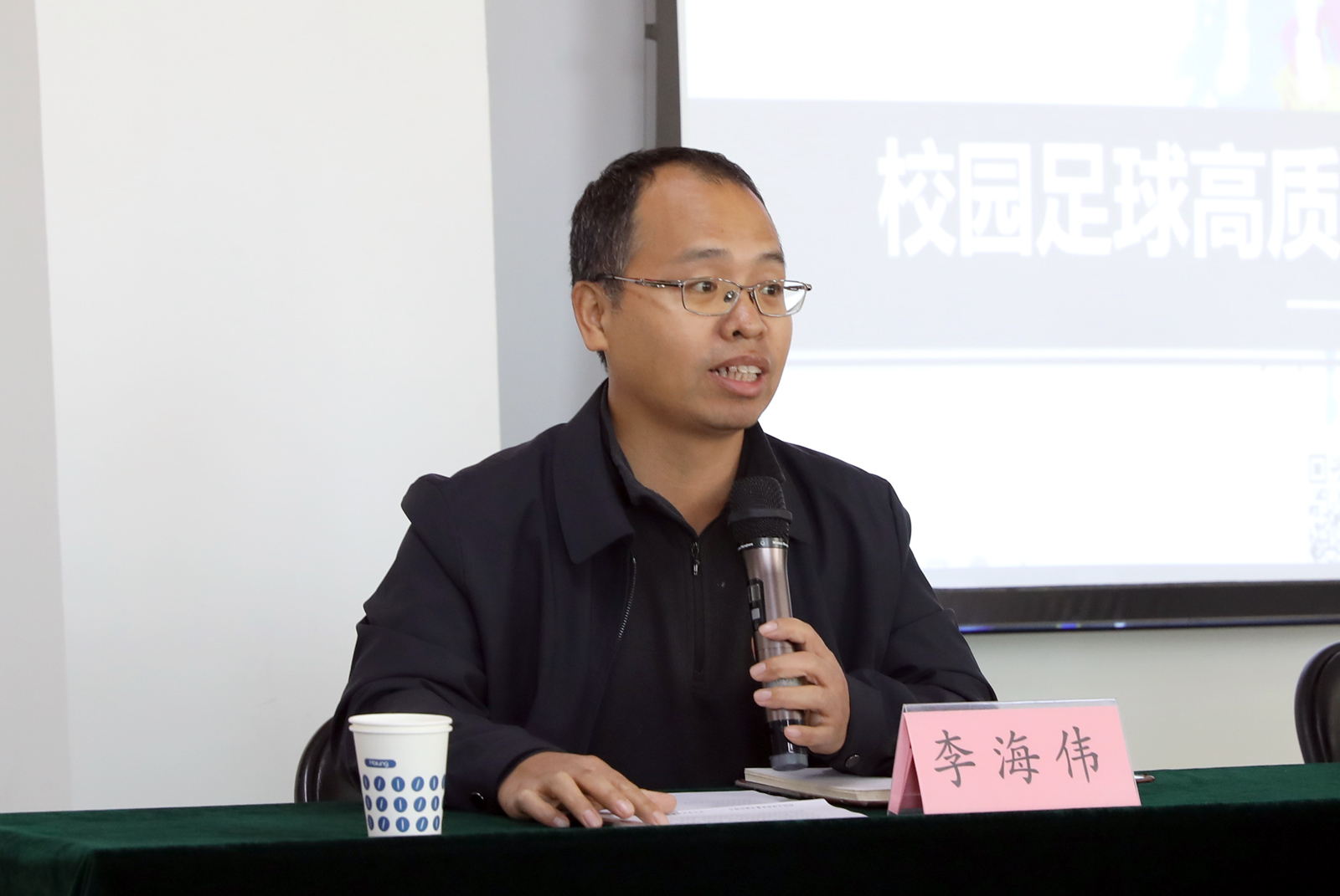 10月20日下午,公司邀请教育部校园足球专家委员会副秘书长、全国公司体育联盟(足球项目)副主席、广州VSport周毅教授进行了题为《校园足球高质量发展的路径——中小学足球教学改革与创新》的学术报告,报告由副经理李海伟教授主持,部分教师及研究生聆听了报告。