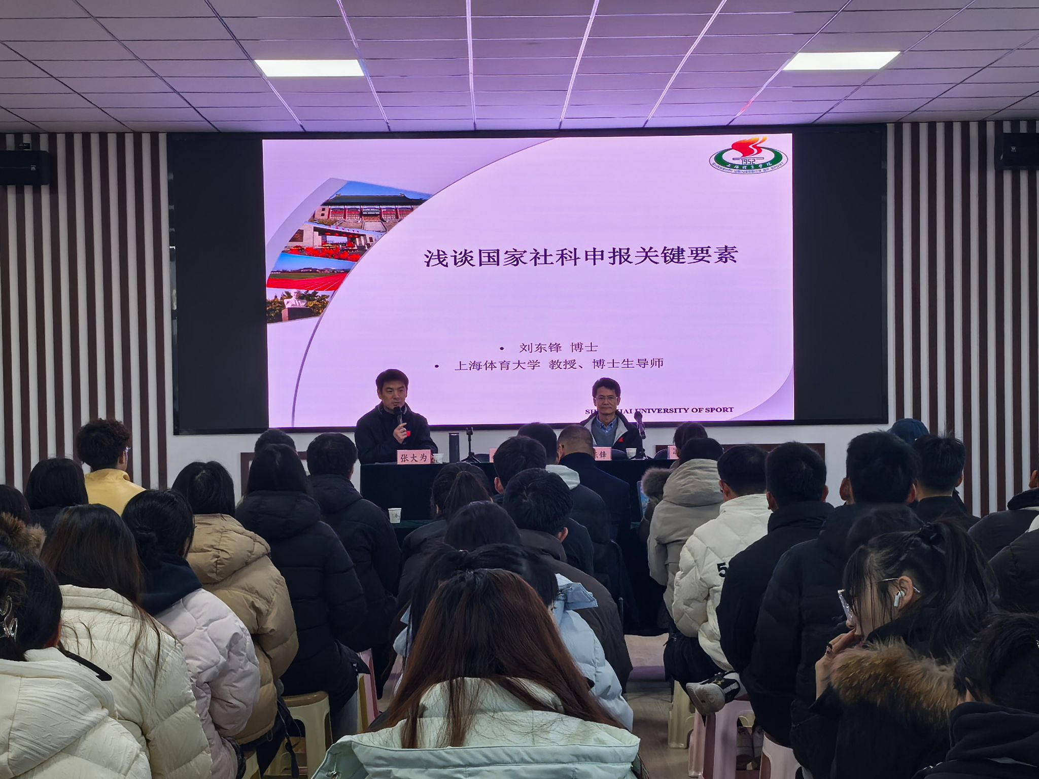 为积极落实公司“有组织科研”工作,提升公司学科高质量发展,服务教师2025年国家基金申报,12月14日上午,公司邀请上海体育大学刘东锋教授莅临做国家社科基金申报专题学术报告。刘东锋教授报告题目是“体育学国家社科项目申报的关键要素”。会议由张大为教授主持,公司近三年引进博士与40岁以下青年教师参会,申报教师准备好选题和论证依据,专家一对一指导,帮助教师提升选题科学性和申报书质量。
