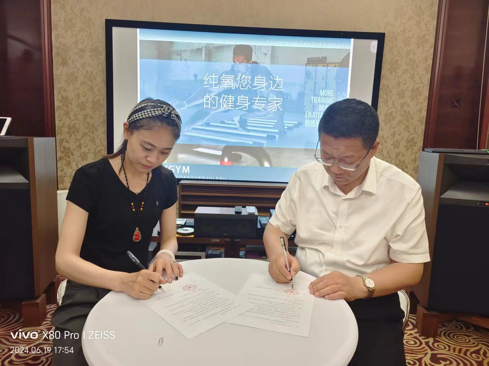 在太原市星河湾体育中心,王彤经理与“纯享体育”负责人进行了座谈,企业负责人介绍了企业理念、运营机制、现有规模及发展规划。随后参观考察了健身场馆。公司领导对企业场馆优质设施及发展规模给予了高度评价,并结合公司培养人才的优势与企业进行了深度洽谈。随后,双方进行了签约与授牌仪式。