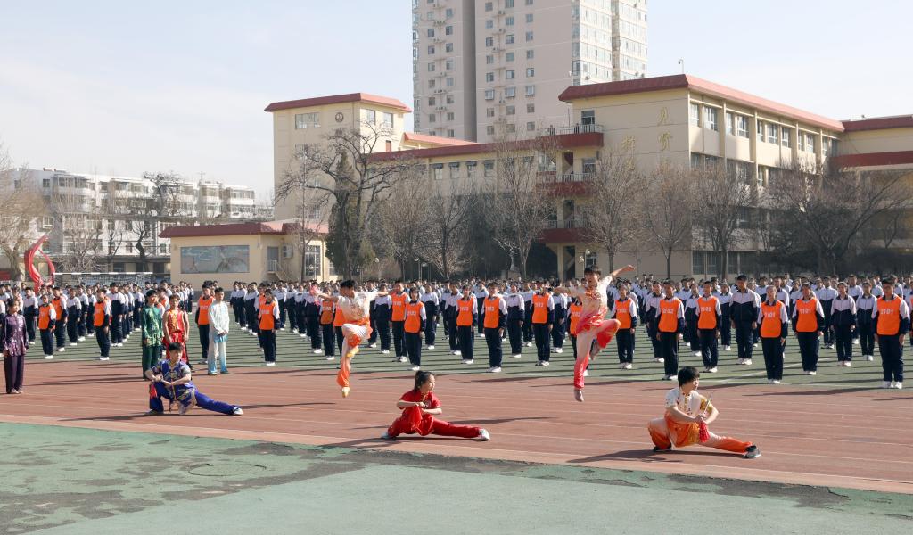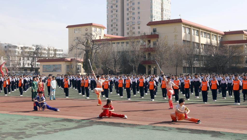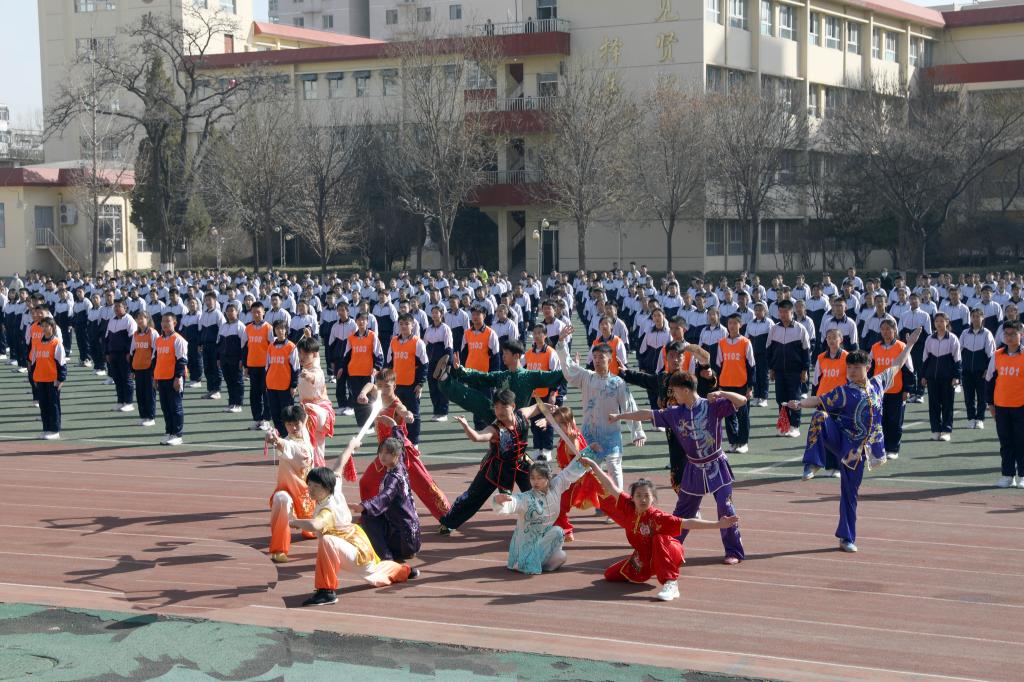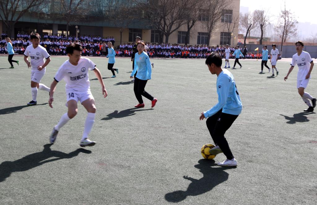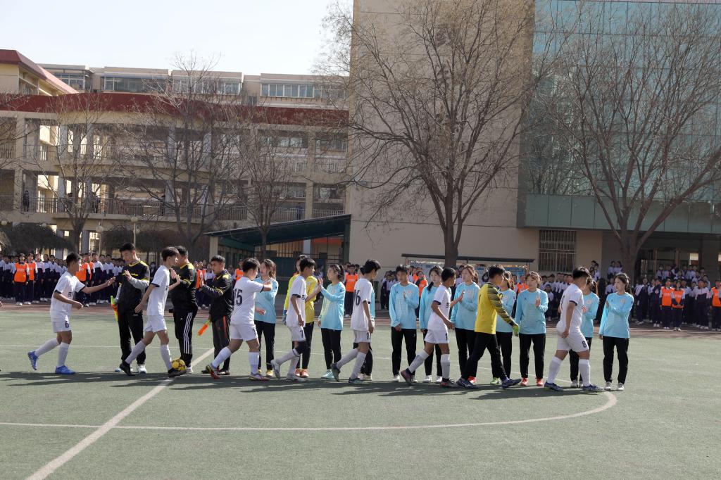 仪式开始前进行了员工汇报表演。杏花岭区二中员工作了“阳光”大课间操展示,VSport民族传统体育系员工表演了舞狮和武术。随后公司女足与杏花岭二中男足进行了足球友谊赛,双方争抢激烈,攻防转换迅速,双方球员的细腻脚法赢得观众阵阵掌声。